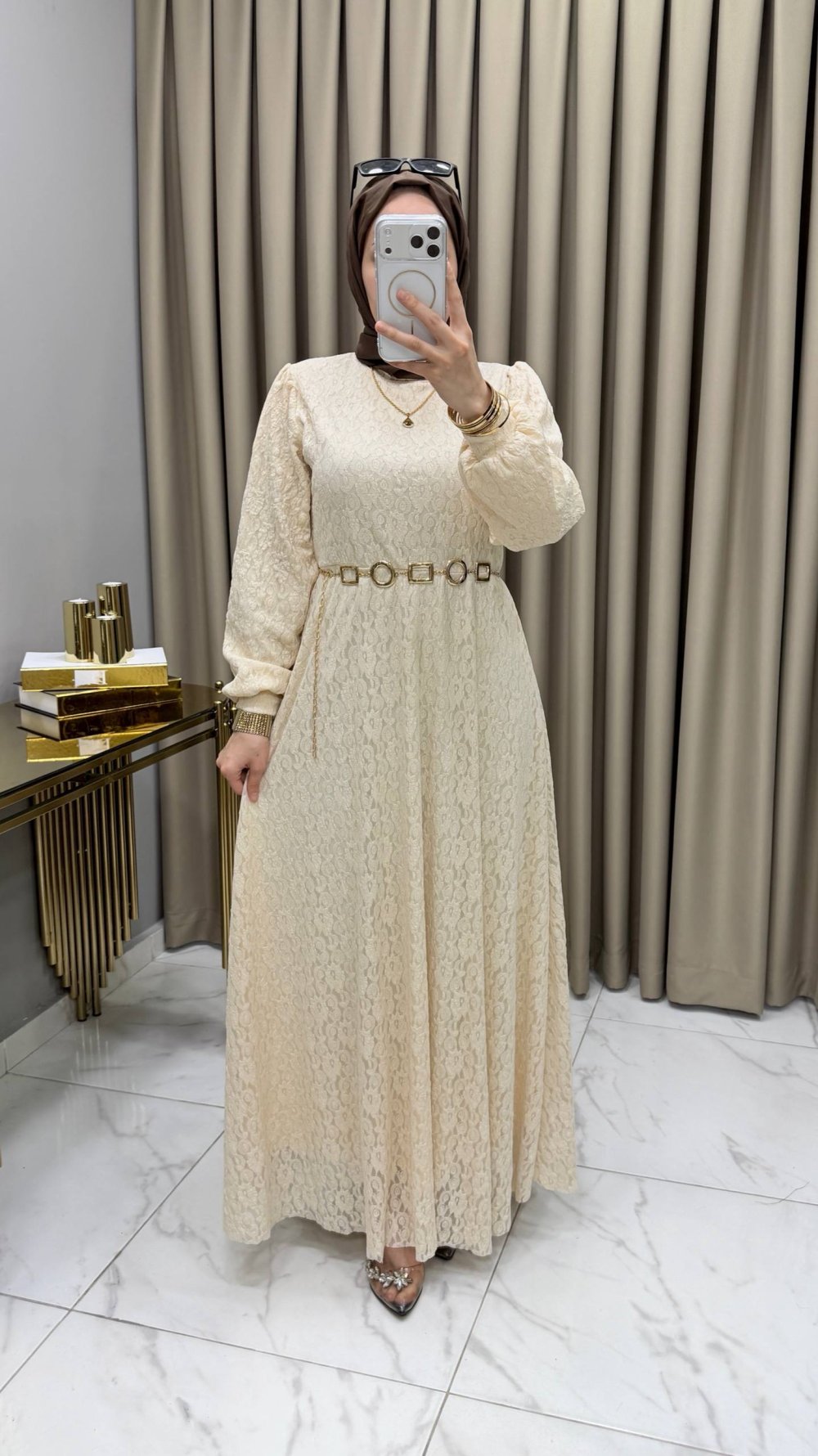 Dantel Elbise Krem Krem