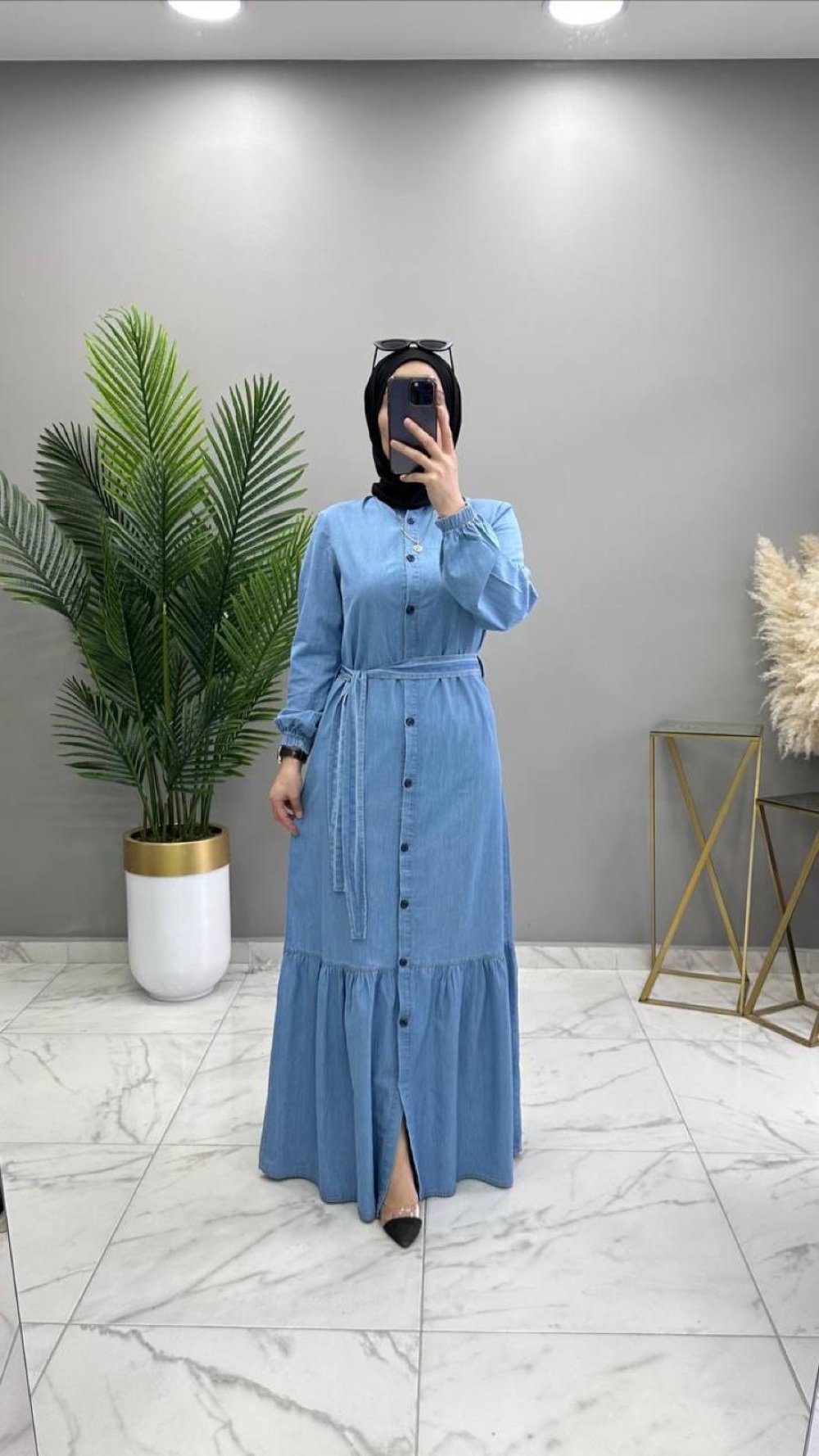 Düğmeli Kot Elbise Açık Mavi kot mavi
