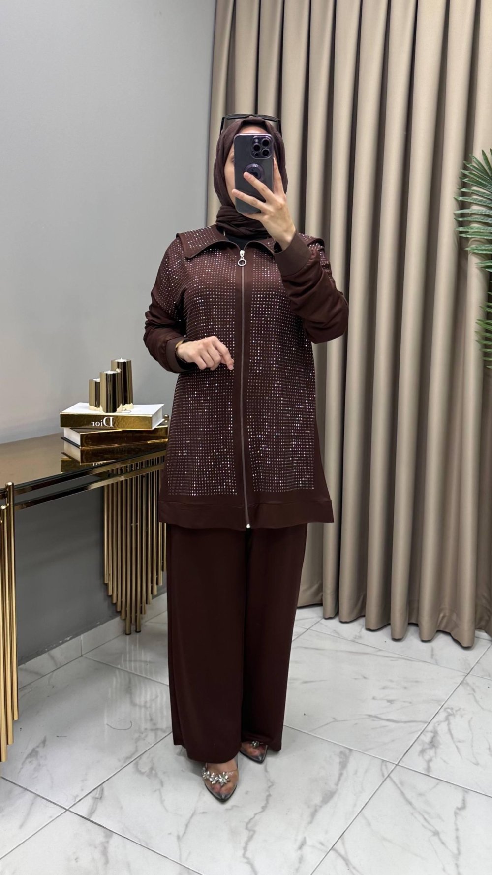 Efsane Taşlı Takım Kahve Kahverengi