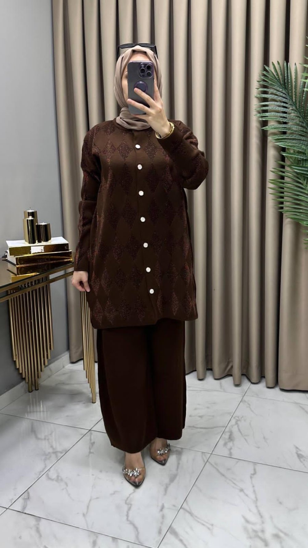 Cennet Taşlı Takım Kahve Kahverengi