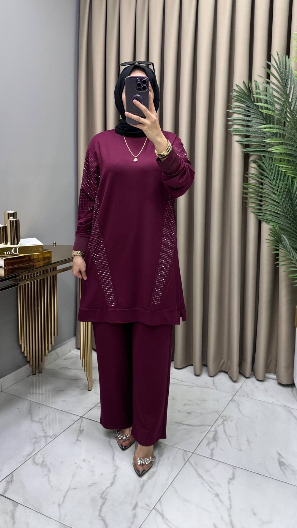 Hanımeli Taşlı Takım Fuşya Fuşya