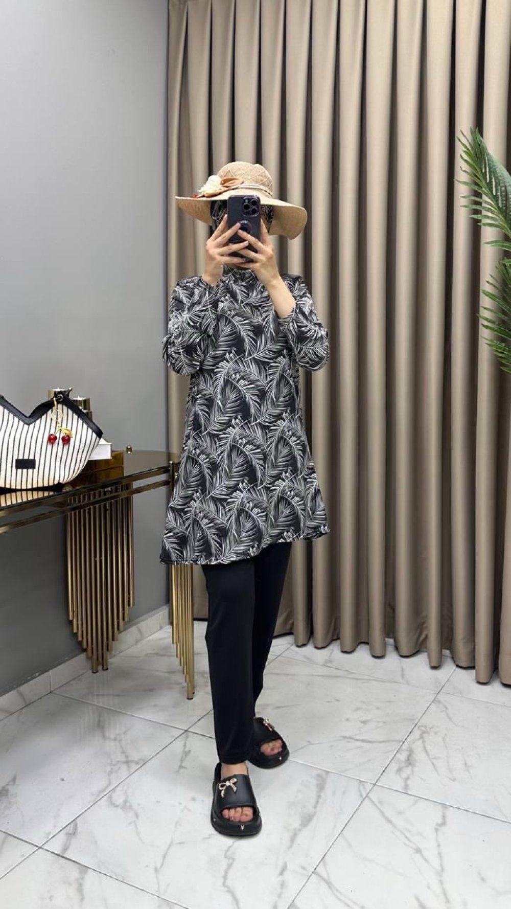 Tunik, pantolon ve bone üçlü takım