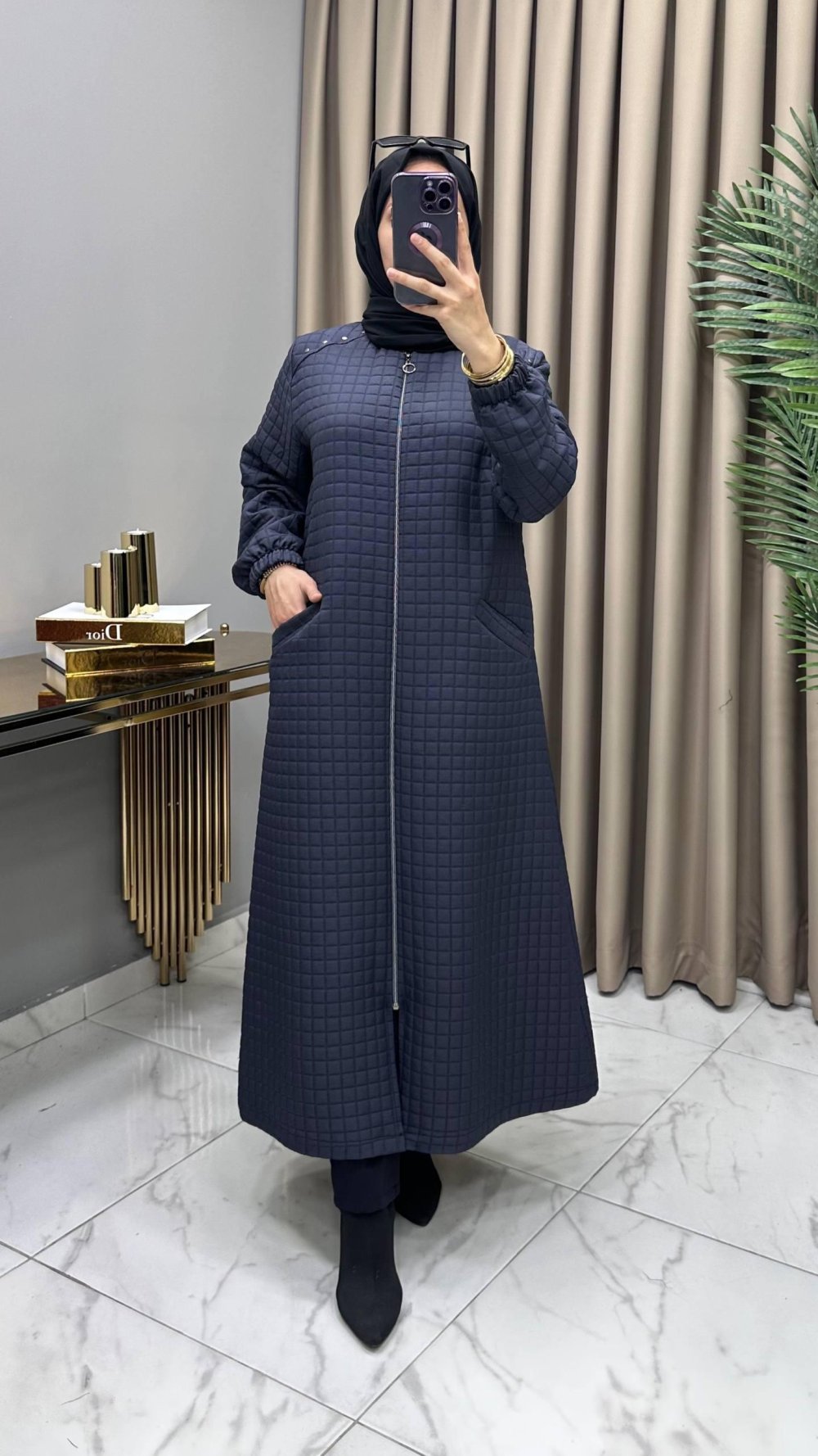 İkbal Yün Kapitone Ferace Kaban Lacivert Lacivert