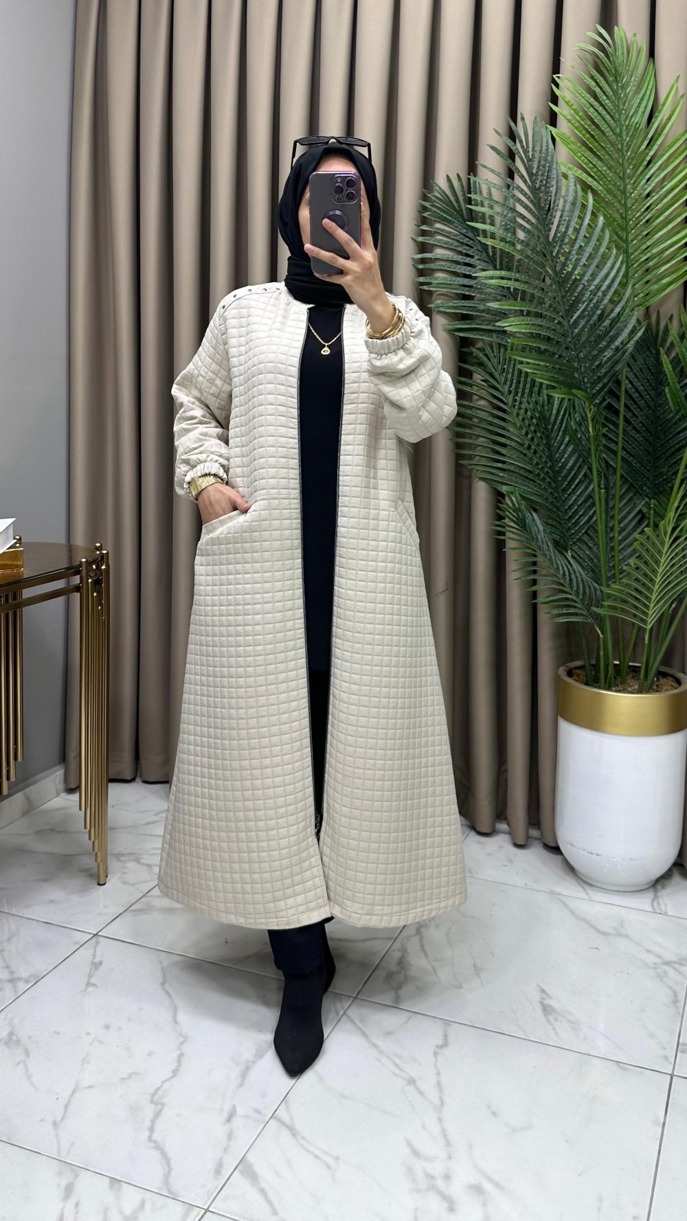İkbal Yün Kapitone Ferace Kaban Füme Füme