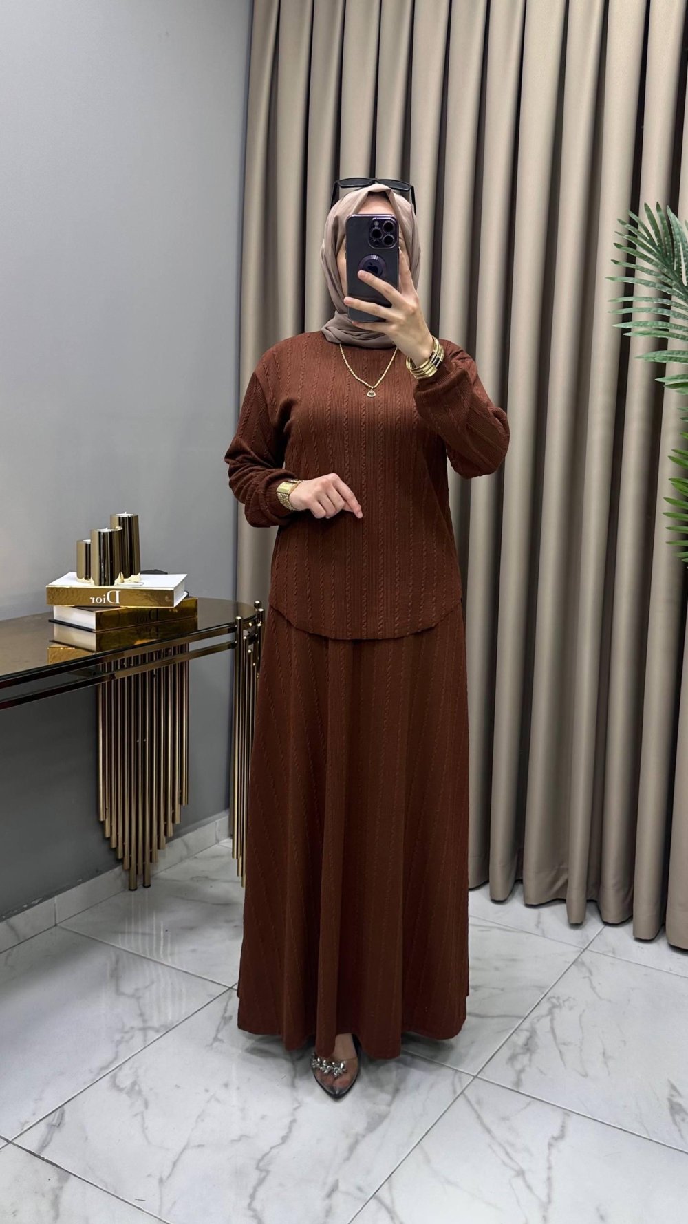 Zerafet Etekli Takım Kahve Kahverengi