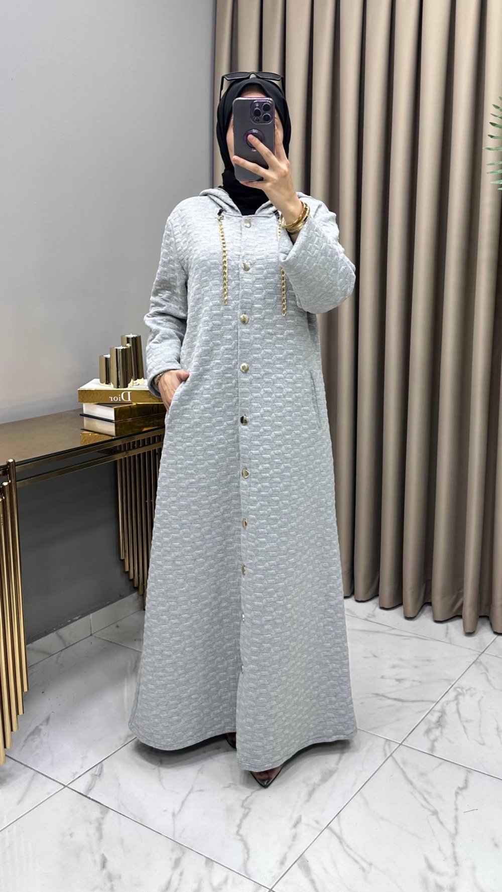 İkbal Yün Kapitone Ferace Kaban Füme Füme
