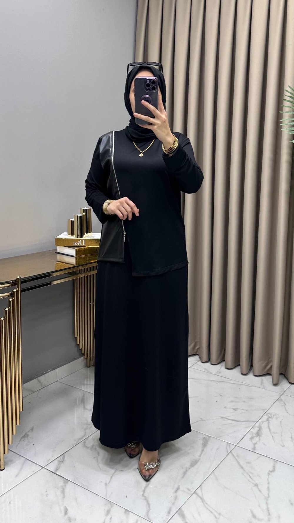Deri Detaylı  Etekli Takım
