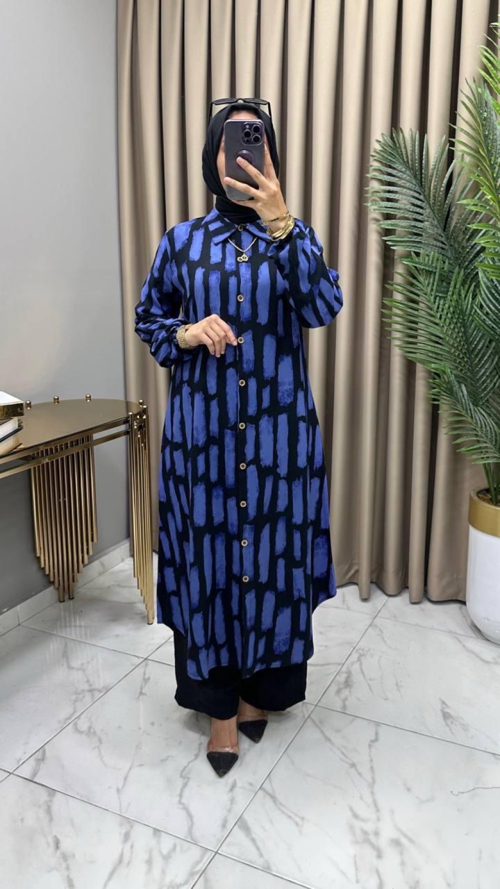 Tunik , boydan komple düğmelidir,