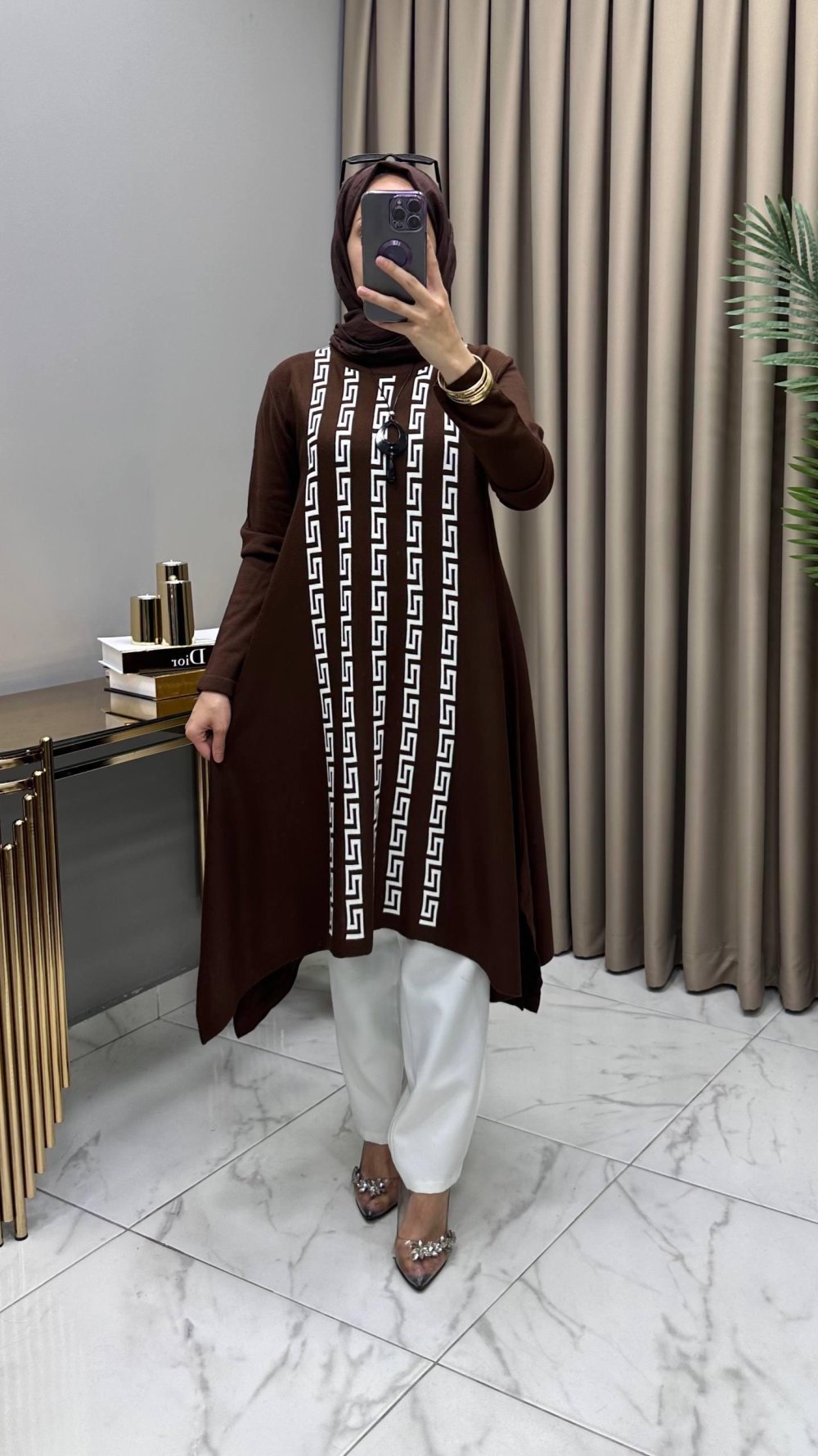 Sevgi Tunik Kolye Hediyeli Kahve Kahverengi